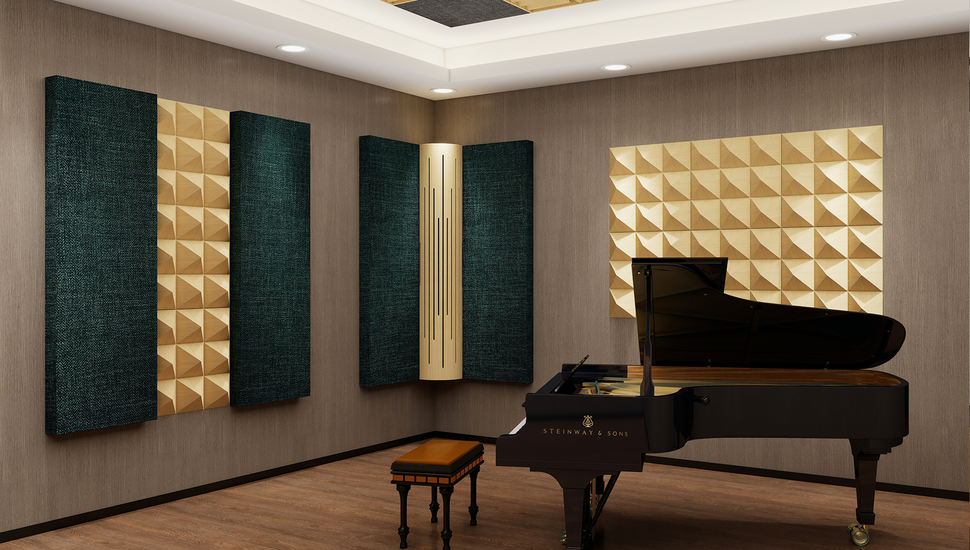 布艺全频吸音体是一种高效的声学材料,主要用于改善室内声学环境。其表面采用透声布艺装饰,内部填充高密度吸音材料,能够有效吸收宽频段的声波,减少回声和噪音。改善良好声学效果的场所,兼具美观与功能性。宽300mm(600)X高600mm(900/1200/1500/1800)X厚100mm