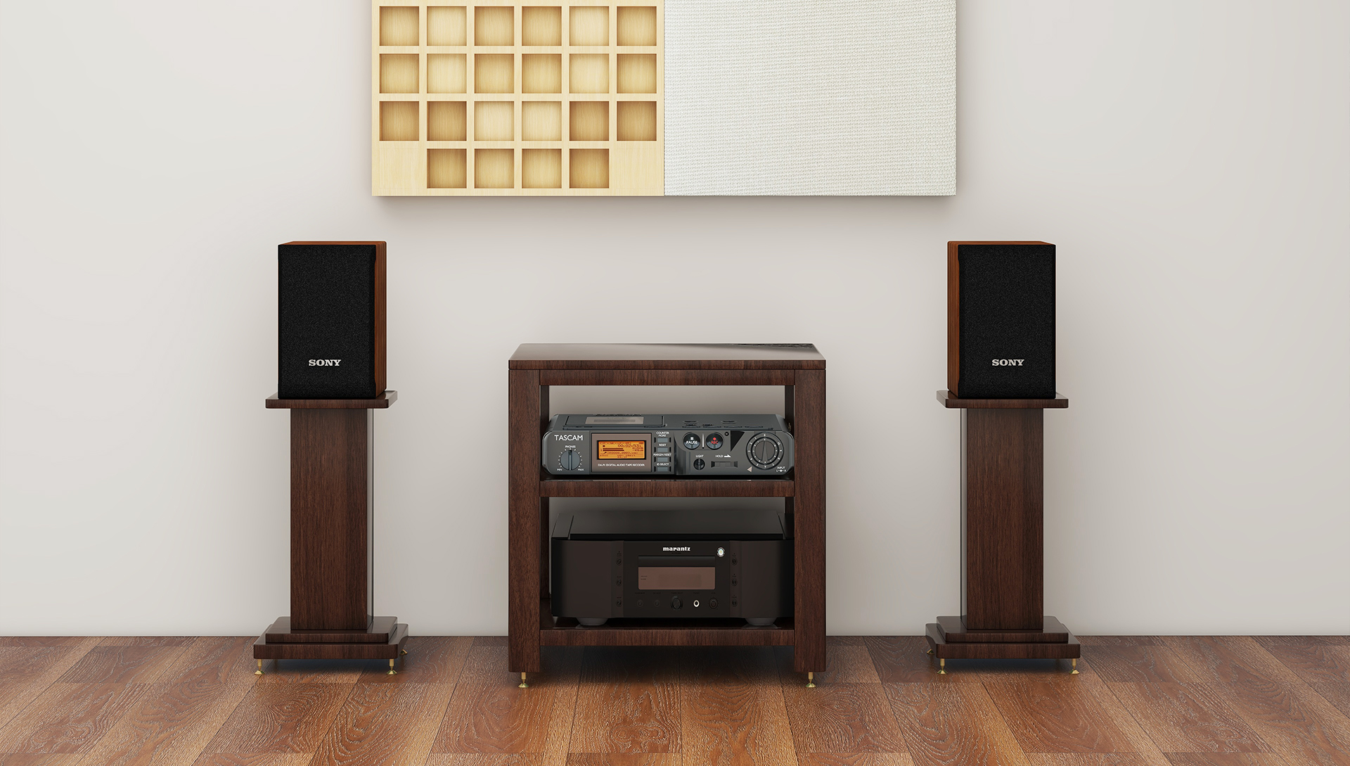 采用北美黑胡桃木,底座预埋螺母,使用适用避震脚钉设计,有效抑制共振,杜绝对音质的干扰,是发烧友的等级装备,给发烧友的音乐一角,简约的元素演绎现代生活,打造年轻人喜爱的家居。